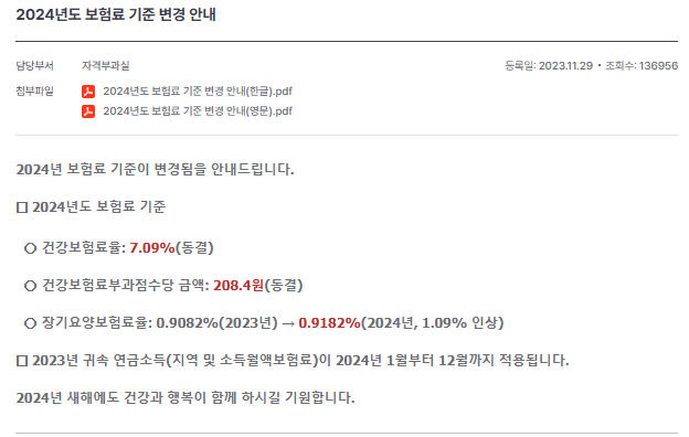 참고로 2024년도 보험료 기준에 대해서는 아래 내용을 참고해보시기 바랍니다.